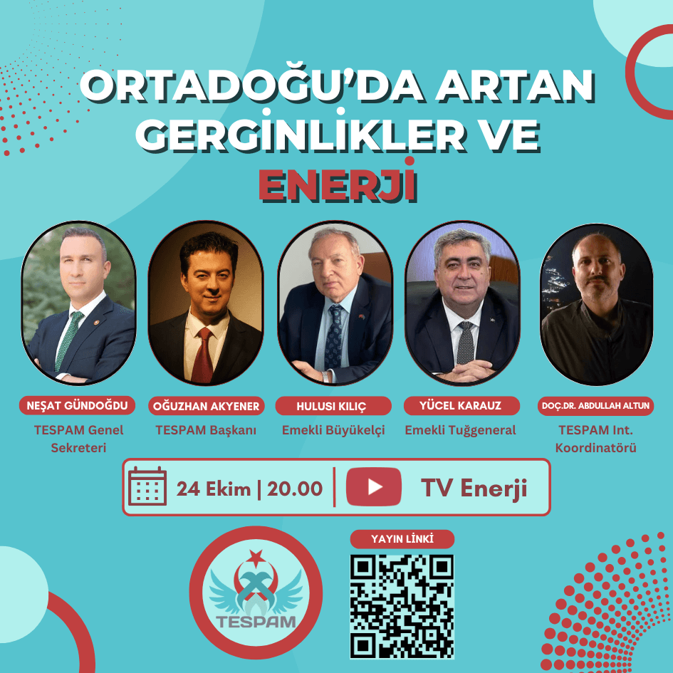 TESPAM tarafından gündemi yorumlayan online programa davetlisiniz. Programımızı TESPAM’ın resmi youtube hesabı olan TVEnerji üzerinden izleyebilirsiniz. Moderatör: Neşat Gündoğdu Konuşmacılar: Yücel Karauz Hulusi Kılıç Oğuzhan Akyener Abdullah Altun